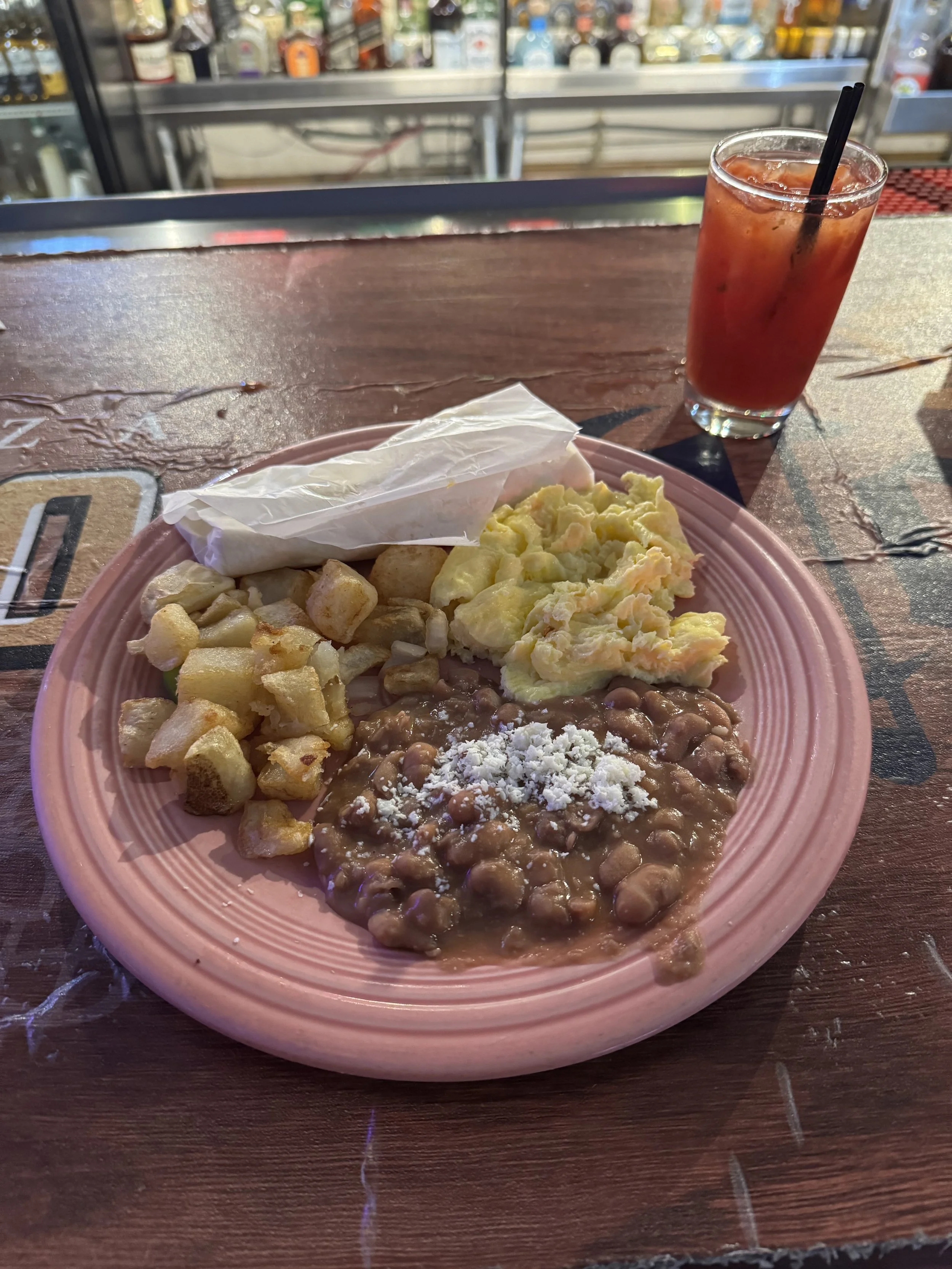 They have a large beverage selection, including several different $6.95 breakfast drinks. The Paloma Mezcal is very popular - it’s a great way to have your grapefruit juice at breakfast! However, many people opt for the 99¢ Bloody Mary. The Bloody Mary is nice and spicy, so if that’s your thing we highly reccomend it. La Salsa Canitna also offers coffee and juice options, so there’s something for everyone at the table!