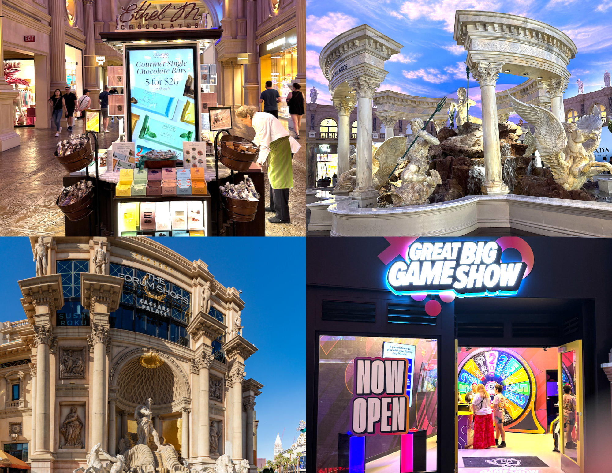 As you stroll through the Forum Shops, be sure to stop by the Ethel M Candy cart for a free sample! Ethel M candy is made in their local Las Vegas factory and it’s absolutely delicious.