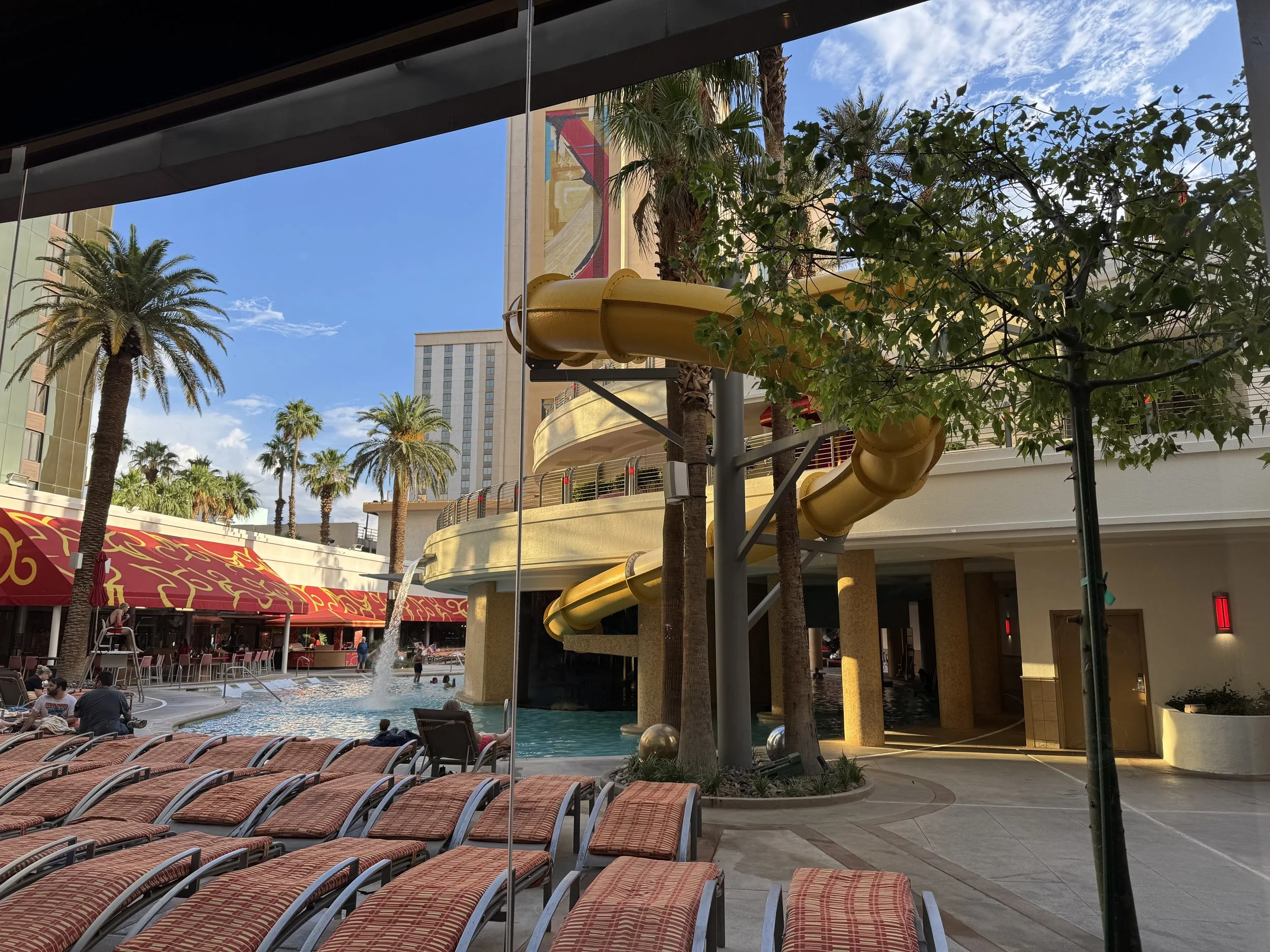 If you want lunch, the Chick-fil-A restaurant inside of the Golden Nugget is super close to the pool area.