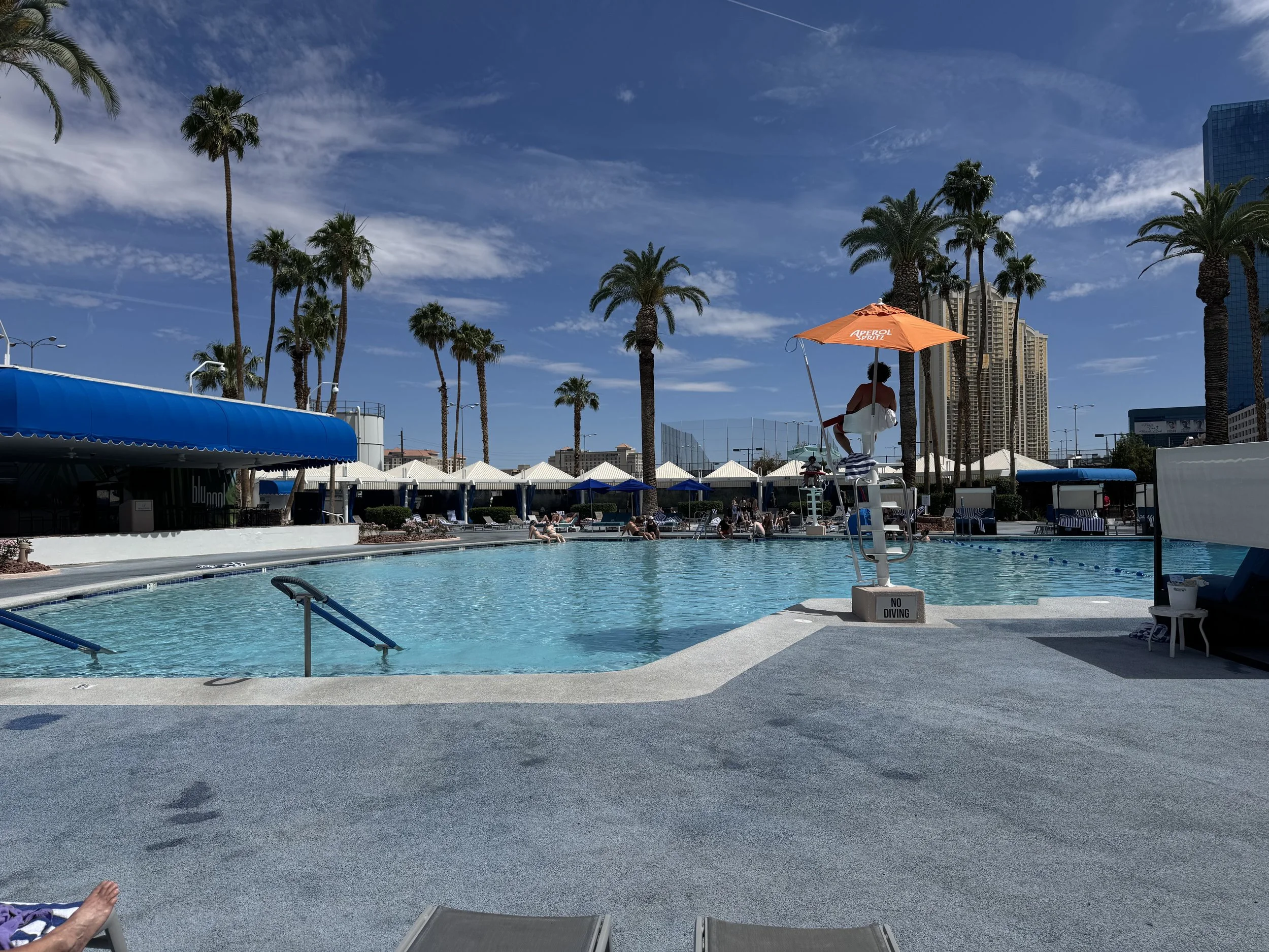 The pool at Planet Hollywood Las Vegas (known as The Scene Pool Deck) offers a rooftop escape with stunning views of the Strip and a fun atmosphere perfect for both relaxation and excitement. If you happen to be staying at Planet Hollywood, you can request a room that includes direct access to the pool from your room! But even if you aren’t a Planet Hollywood guest, you can still use The Scene pool.